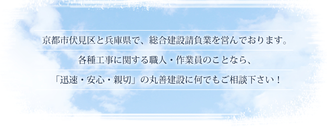 応募、詳細は下記まで、お電話でお問合せ下さい。 丸善建設株式会社(京都)0120-444-699 / 有限会社晋陽建設(兵庫) 0120-920-155